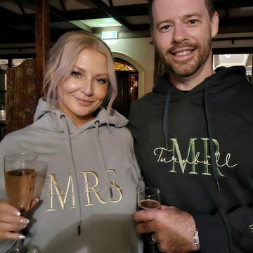 Create custom embroidered Mr & Mrs hoodies! Adorable matching sets for newlyweds & married couples. Personalized & unique.